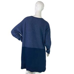 This is an Athleta 'Stargazer' pullover color block sweater in two shades of blue, women's size small. This sweater has side slits and is longer in the back. Fabric content: 70% wool, 30% cashmere. Great condition with no apparent flaws or defects. All photos displayed are of the actual item. Measurements;