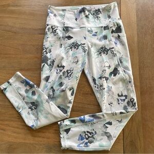 Athleta Stash Pocket Salutation White Floral Peony 7/8 Leggings Medium L13