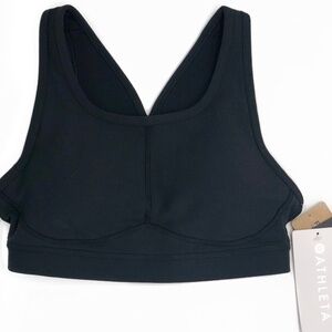 Stay supported on even the most intense workout with this compression-fit sports bra's tech-enhanced stretch fabric and breathable mesh lining.