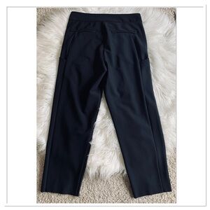 Black Cropped Straight Leg Fit Zip Fly Button Waist Pocket Sides Zipper Pockets At Back High Waisted Raw Hem Stellar Straight Crop Pants By Athleta Size 8