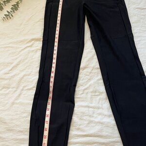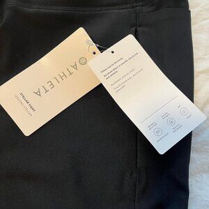 This pair of sleek Athleta Stellar Tight pants is perfect for the woman who values both style and comfort in her professional attire. These size 12 Tall pants are cut from a smooth, stretchable fabric, designed to fit neatly against the body while allowing full freedom of movement. Their jet-black hue ensures versatility and a match with various tops and shoes. With tags still attached, these pants are in store-bought condition.