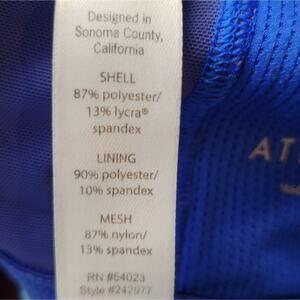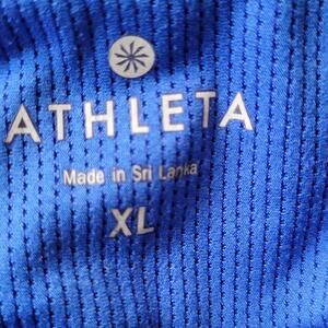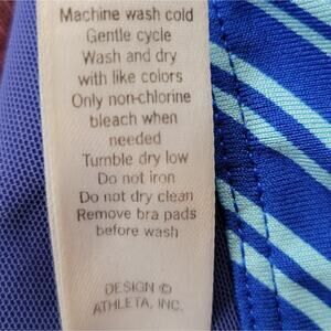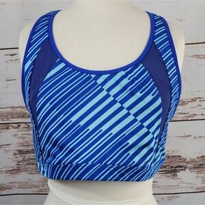Athleta Sting Stunner racerback sports bra in blue print. Overall Good Preowned Condition, Size: XL.