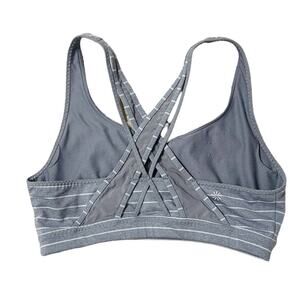 Athleta Strappy Racer Back Sports Bra Gray/White Stripe Size M