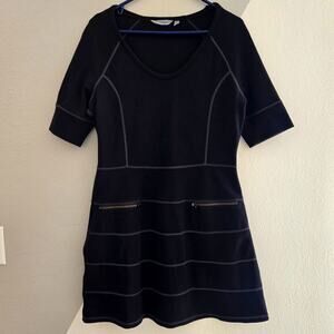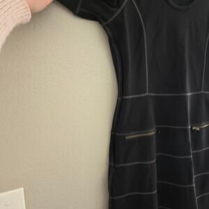 Black thick ponte knit A line sporty dress with a scoop neck and side zipper. Great used condition!