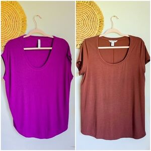 Athleta Stratus II Ancient Mahogany & Exotic Fuchsia Rib Tee Active Top Bundle Lot, Size Medium