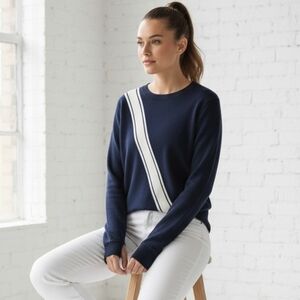 Athleta Streetwise Stripe Navy Blue Sweater With Coolmax & Thumbholes Size S