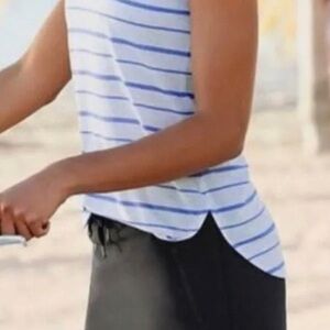 Ultra-lightweight with an effortless regular fit and a striped pattern, this tank is the perfect way to stay comfortable and cool all day.