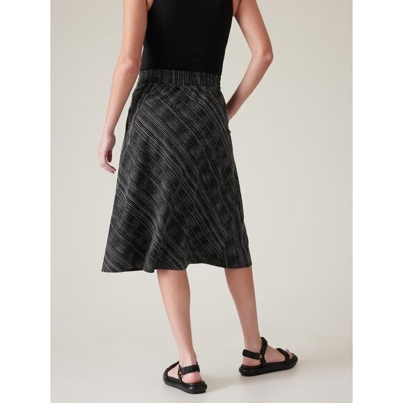 This Athleta A-line skirt combines comfort, style, and function — perfect for everything from running errands to weekend getaways. Features sporty stripes, an elastic waistband with a functional drawstring, side zippered pockets for convenience, and a flattering A-line silhouette. Versatile and easy to wear, this skirt transitions effortlessly from casual wear to active lifestyle outfits.