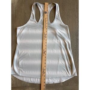 Keywords: Athleta, tank top, racerback, sleeveless, athletic, casual, workout, yoga, running, striped, exercise, grey, white, womens