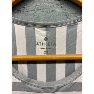 Athleta Striped Tank Top Women’s XS Gray White Sleeveless Stretch Athletic