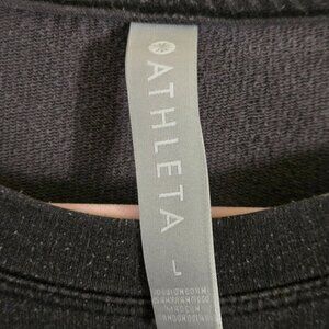 This Athleta Studio To Street sweatshirt features a stylish black camo pattern, offering a comfortable fit with its super soft fabric. Perfect for casual outings or workouts, it combines fashion and function effortlessly.