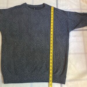 Charcoal Heather and black print crew neck sweatshirt. Very soft and comfortable. Plenty of stretch.