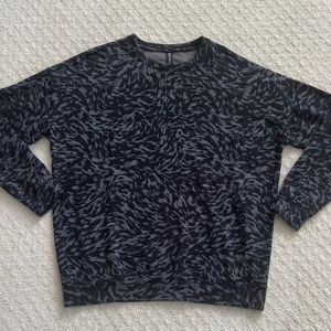 Athleta Studio to Street Black/Gray Printed Crewneck Sweatshirt - Size Small. Features soft stretchy fabric, crew neckline, and pullover style. Excellent pre-owned condition - no flaws!
