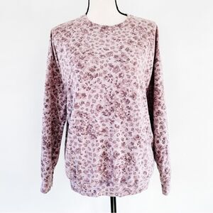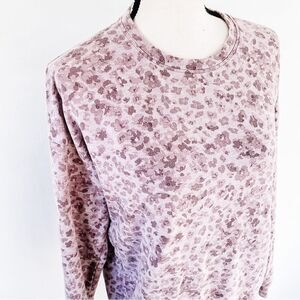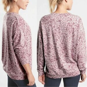 Athleta Studio to Street Pink Mauve Splatter Leopard Crewneck Sweatshirt Sz S