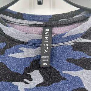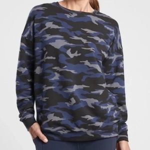 Athleta Studio To Street Printed Camo Blue Pullover Crew Neck Sweatshirt Size XS