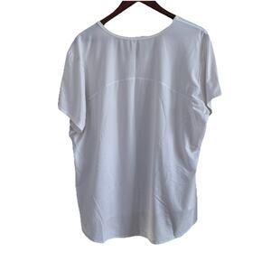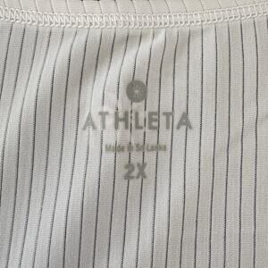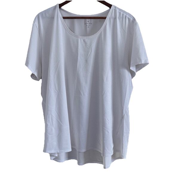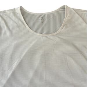 Athleta Subtle Striped Round Neck White T-Shirt Short Sleeve Size 2X