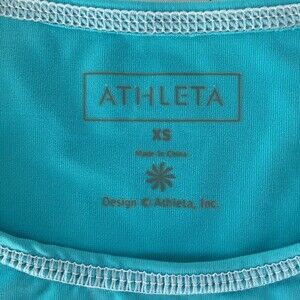 Athleta Summer Shade Rash Guard Top Aqua Blue Short Sleeves Water Sports Beach