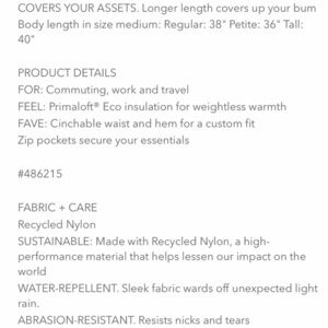 Athleta Summit Insulated Parka S Mountain Olive Primaloft Eco Recycled Nylon NEW