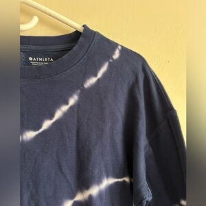 EUC Sundown Sweatshirt from Athleta in a size XS. This sweatshirt is in a navy blue and white tie dye pattern. Slightly cropped and boxy fit. No stains or flaws!