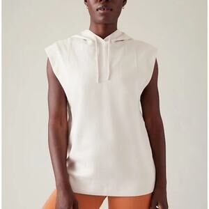 Athleta Sundown Sweatshirt Tank Women's Size Extra Small – Pullover Hoodie Design, Sleeveless Silhouette, Soft Cream Color, Lightweight Stretch Fabric, Breathable and Moisture-Wicking, Relaxed Fit with Active Edge, Ribbed Hem Detail, Casual Athleisure Comfort, Ideal for Layering, Studio to Street Looks, or Warm-Weather Loungewear.