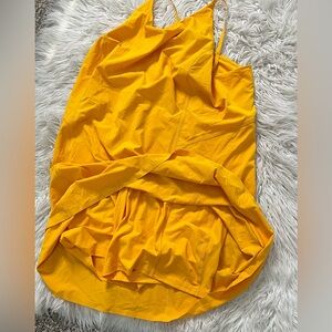 Bright yellow mini dress. Sleeveless with a chic cut. Ideal for sunny days.