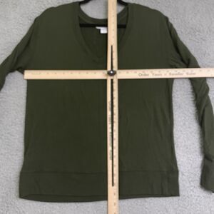 Athleta Sunrise V-Neck Sweatshirt Womens Small Green Pullover Thumbholes Soft