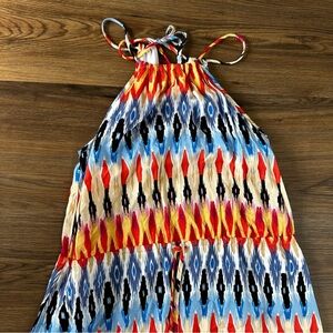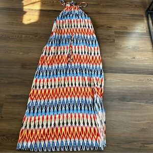 Athleta Sunset Maxi Ikat Halter Dress Multicolor Boho Small Side Slit Sleeveless