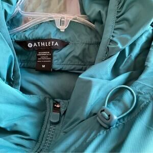 Brand new with tags deep teal colored light weight water repellant jacket by Athleta. Model is Superset Jacket and the color is Borealis green. Made from recycled nylon.