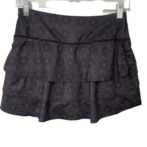Athleta Swagger Tennis Skirt Skort Black with Blue Floral Print Tiered Ruffle