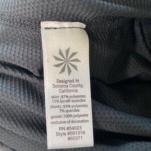A beautiful black with blue floral print Athleta Swagger tennis skirt/skort. Layered flouncy skirt with built in shorts.
