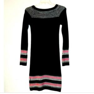 Athleta Sweater Dress Knit XXS Black Pink Gray Sweater Fair Isle Nordic Holiday