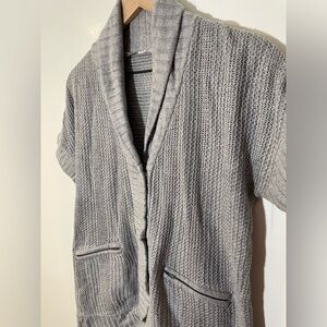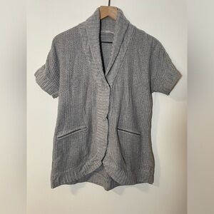 Athleta Sweater Short Sleeve Snap Button Cardigan Y2K Gray Knit Medium Eco EUC