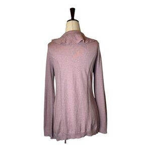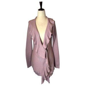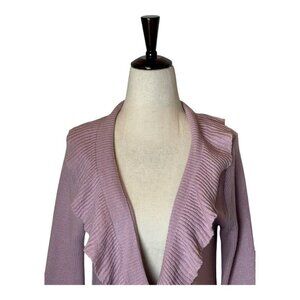 Athleta Sweater Women Small Pink Lilac Cotton Cashmere Knit Ruffle Front Cardiga