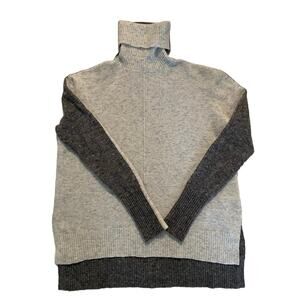 Athleta Sweater Womens Gray & Ivory Merino Wool Oversized Turtleneck Pullover