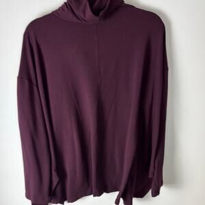 Gently Used Athleta Turtleneck Sweater. This is missing its size and care tag, I believe it is large based on fit. Kind of a brown / red / burgundy. Lightweight. Side slits. Cute and comfy!