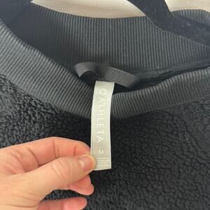 Gently Used Athleta Crewneck Sherpa Fleece Sweater. This is a women's medium. Black throughout. Hidden front pockets. Cute and cozy! 100% polyester.