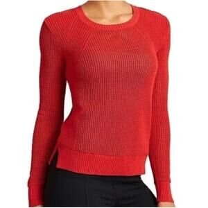 Athleta Sweater Womens Medium Red Mesh Open Knit Nylon Classic Stretch Crew Neck