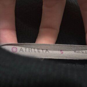 PLEASE NOTE: Color is a deep green. This is a women's green tunic sweater from Athleta in size S. It features a tight-knit ribbed design, long sleeves, and a mock neck neckline. The sweater is made from a blend of polyester and wool, including merino wool. It is machine washable and suitable for regular wear. Super soft! No flaws.