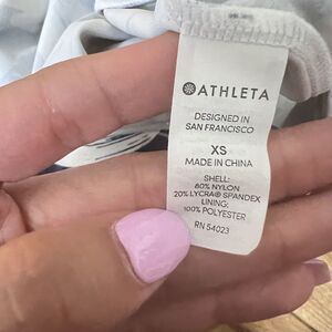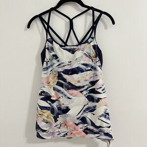 Athleta Swim Vivid Tankini Top Size XS White Purple Side Tie Blousy Swimwear