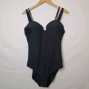 Athleta Swimsuit Size L Aqualuxe Square Plunge One Piece Black