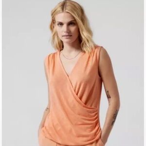 Athleta Sz M Breezy Wrap Tank Top In Orange Modal Polyester Lightweight