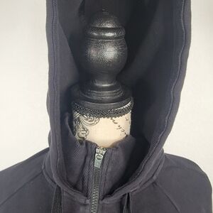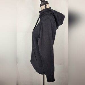 Athleta Sz M Triumph Zip Up Sweater Hooded Thumbholes Full Zip Black