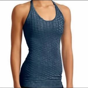 Athleta Sz Small Epitomize Racerback Tank Top Scoop Neck Sleeveless Blue Texture