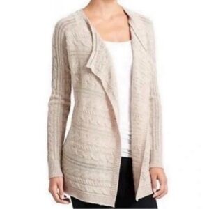 Athleta Tan Oatmeal Cable Knit Merino Wool Open Front Cardigan Size Medium