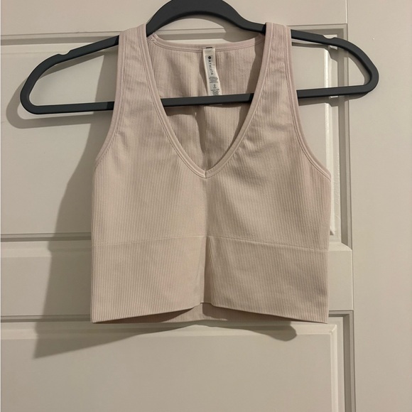 Excellent Preowned Condition - Off White ribbed Athleta tank with a stylish V-neck. Ideal for layering or solo wear. Size: XS