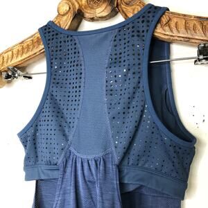 Athleta Tank Top Open Side Draped Padded Bra Racerback Blue Grey XS