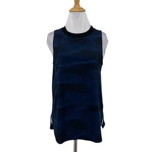 Athleta Tank Top Womens M Medium Navy Black Zephyr Printed Sleeveless Crew Neck