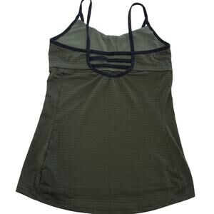 Athleta Tank Top Womens Small Green Flow Strappy Built In Shelf Bra Perforated