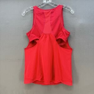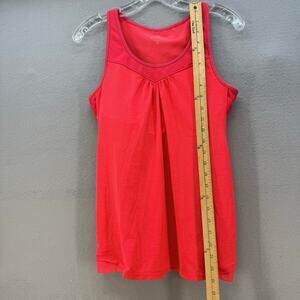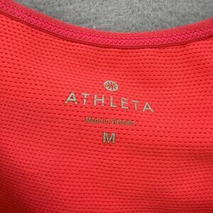 Athleta Women's Tank Top. In the color bright coral. Tagged size M. This women's Athleta tank features the perfect on the go workout top with built in support, racer back, lightweight mesh, long length and a bold color. Style number 217772-03. In preowned condition with minimal signs of wear.