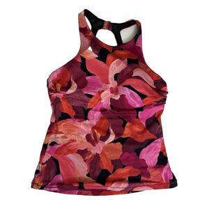 Athleta Tankini 38 cup size B C Floral High Neck Top Beach Underwire Bra SwimwearPink Orange and BlackIn good gently used condition